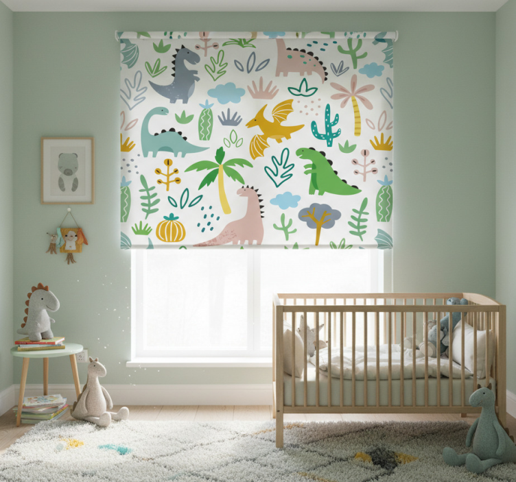 Children room roller blind scandinavian jurassic design