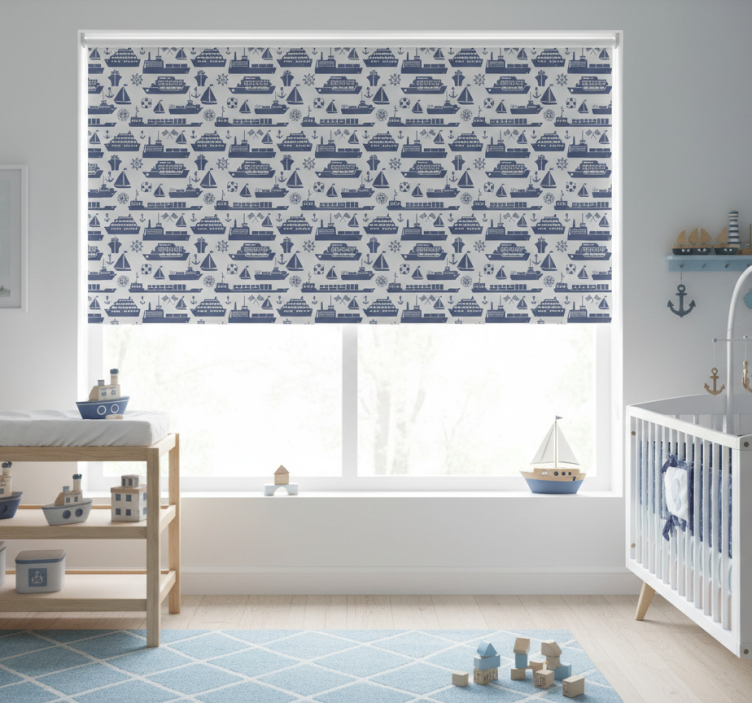 Children room roller blind with different blue boat pattern