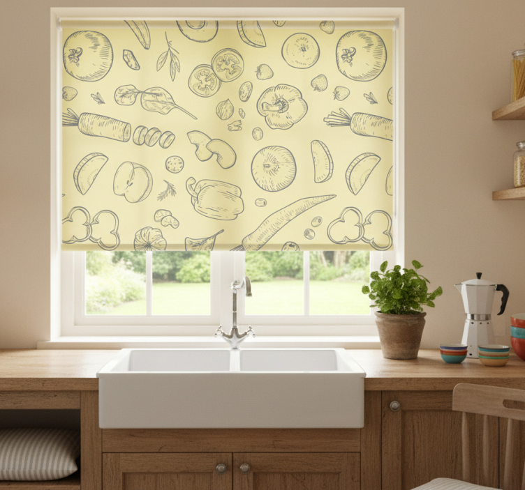 The Fruitful sketches kitchen roller blind is an inspiring choice for anyone looking to elevate their kitchen decor. Its playful and artistic design transforms your space into a cheerful haven, making meal prep and gatherings more enjoyable! The roller blind seamlessly combines functionality with style, ensuring you can enjoy privacy and light control while adorning your windows with a burst of color and creativity.