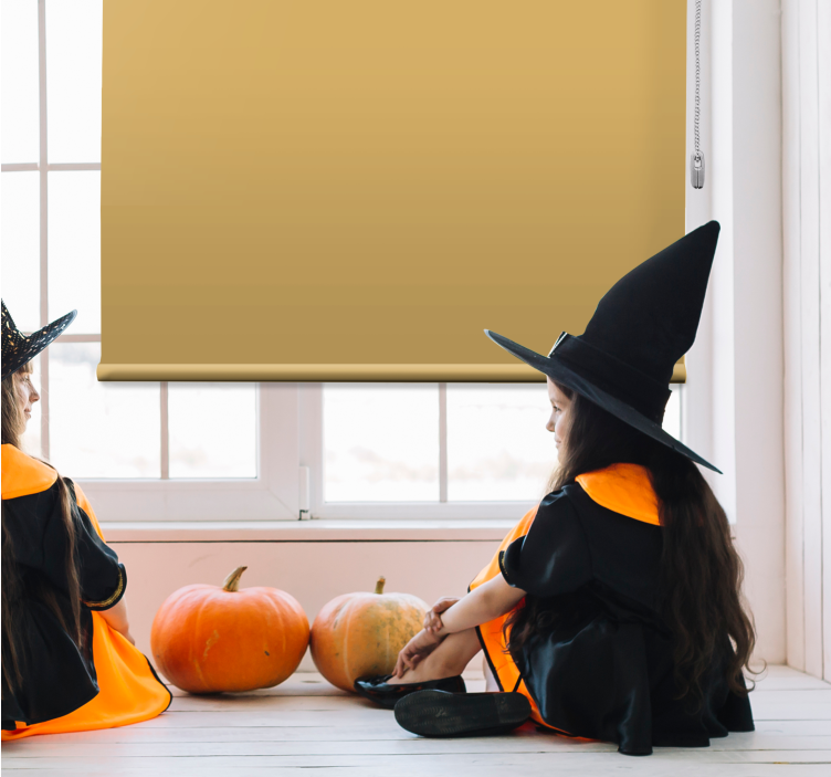 Transform your space with our stunning Golden beige colour opaque roller blind, designed to evoke the essence of autumn! Featuring a harmonious blend of yellow hues, this monochromatic and minimalist design beautifully incorporates elements like pumpkins and witches, making it perfect for Halloween celebrations.