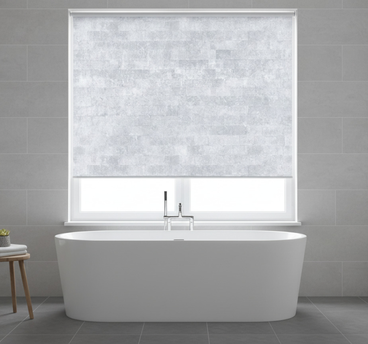 Gray roller blind with aged brick pattern