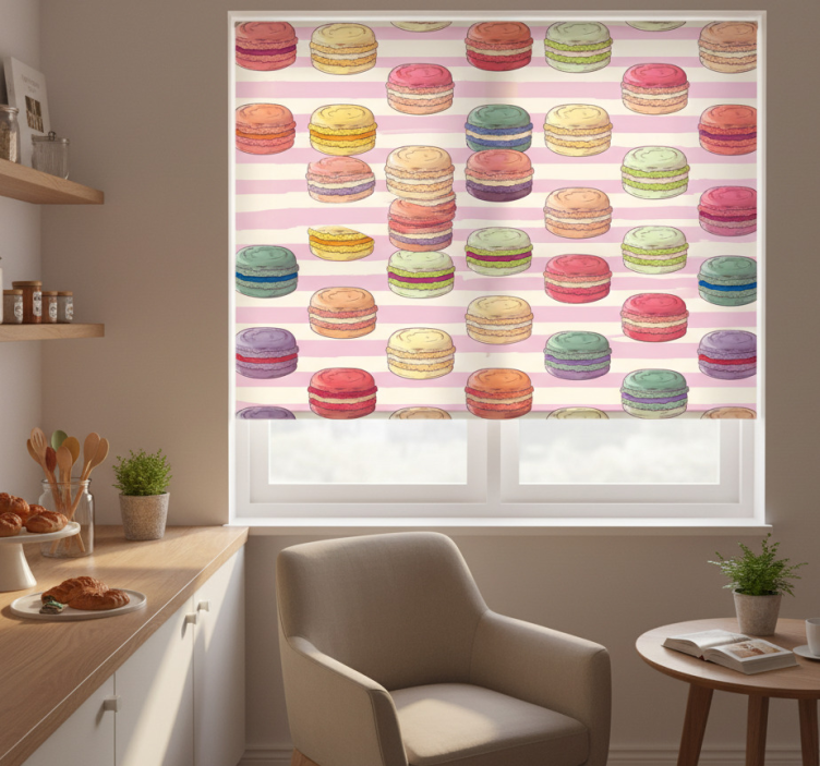Kitchen roller blind colorful macarons pattern