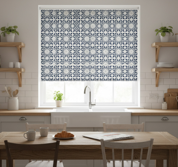 The Kitchen roller blind dark blue clover tile kitchen roller blind is a perfect choice for those looking to elevate their home decor. Its stunning clover tile design adds a unique flair to your kitchen or living area, ensuring that every visitor is impressed. Imagine the warmth and charm it brings, seamlessly blending functionality with style!