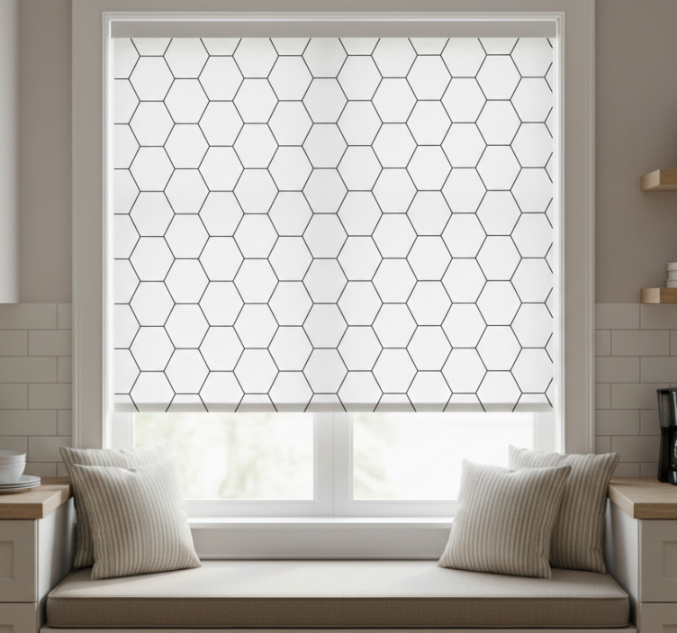 Enhance your home’s aesthetic with the Kitchen roller blind in black and white honeycomb kitchen roller blind. This exquisite window treatment draws the eye and complements a variety of decor styles, making it a perfect choice for anyone looking to elevate their interior. Its elegant design not only beautifies your space but also regulates room temperature, ensuring comfort without compromising on style. Let your kitchen shine with this beautiful addition!