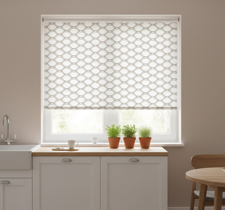 The Kitchen roller blind in brown wavy geometric pattern kitchen roller blind is not just a practical solution but also a beautiful decorative element for your kitchen. Its unique design can transform an ordinary space into a warm and inviting atmosphere, inspiring creativity in your cooking adventures. Imagine the compliments from guests as they admire how this roller blind enhances your home's charm!