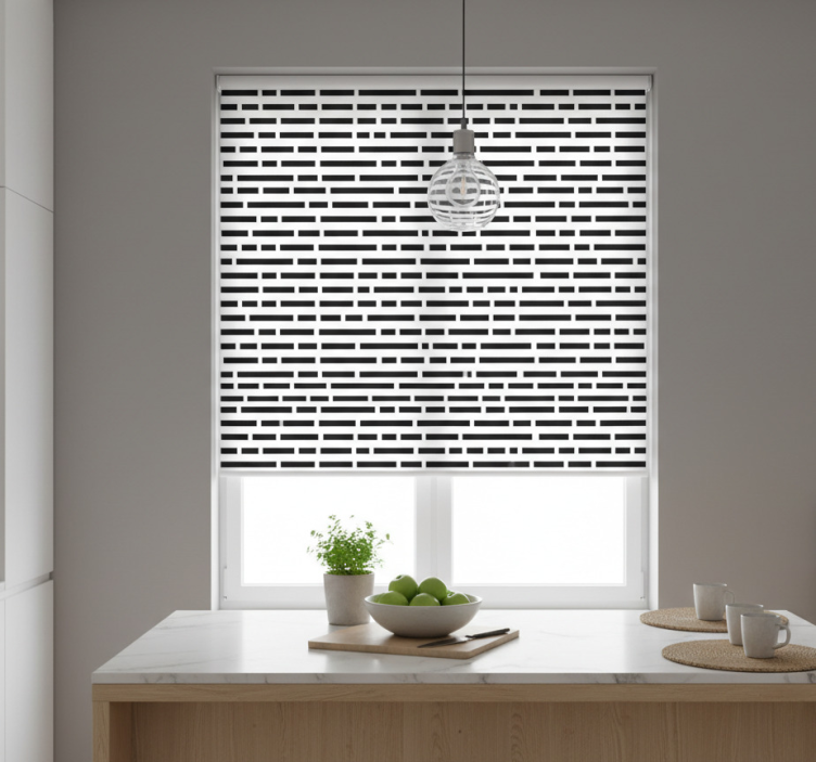 The Kitchen roller blind in nordic black and white rectangles kitchen roller blind is more than just a window covering; it is a statement piece that elevates your kitchen's ambiance. Imagine the delightful contrast of black and white rectangles adding a contemporary flair to your culinary space! This roller blind not only beautifies your windows but also offers essential privacy and light control, making it an ideal choice for those who love to cook and entertain in style.