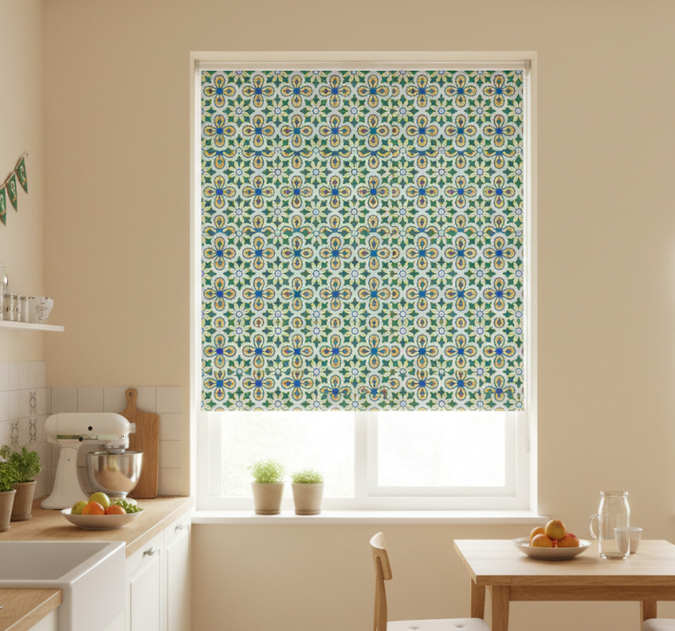 The Kitchen roller blind in yellow and blue portuguese tile kitchen roller blind is more than just a functional item; it's a stunning statement piece that elevates your kitchen's decor. Imagine the delightful ambiance created by vibrant colors and intricate tile designs, making your space feel lively and inviting. This roller blind is perfect for those who wish to express their unique style while keeping their kitchen bright and airy. Let your creativity shine as this blind not only beautifies your windows but also becomes the focal point of your kitchen!