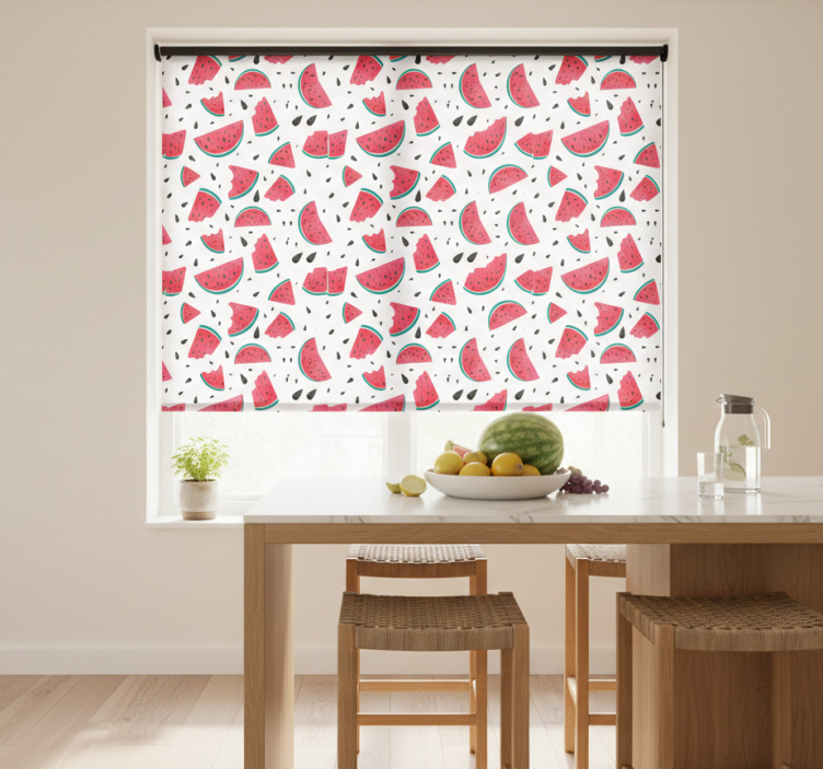 Reference: E6293Introducing our Kitchen roller blind juicy watermelon slices, a delightful addition to your kitchen decor! This vibrant design features luscious watermelon slices in a stunning array of colors, creating a fresh and inviting atmosphere. The playful imagery not only enhances your space but also brings a touch of summer joy, making your kitchen a lively place to gather and create delicious meals!