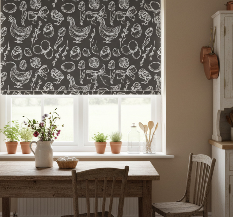 Reference: E6312Introducing our Kitchen roller blind rustic kitchen design, a perfect blend of style and functionality! This exquisite roller blind features a stunning rustic aesthetic, designed to enhance your kitchen's charm while offering practical benefits. With easy assembly in just two clicks, simple cleaning, and the ability to provide privacy while regulating room temperature, this roller blind is a must-have for any kitchen. Enjoy the freedom of 100% customizable measurements and select from three textures that allow you to control the light and privacy levels effortlessly!
