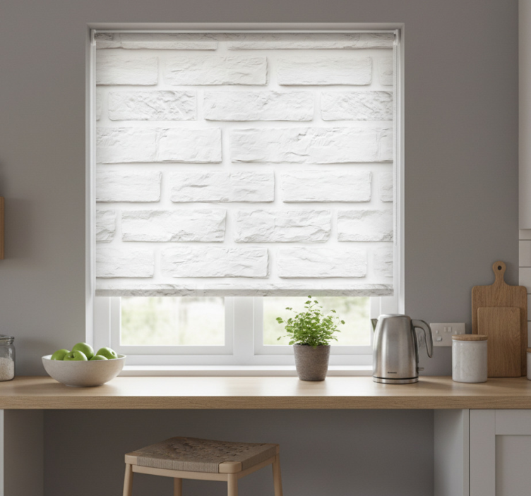 The Kitchen roller blind white stone bricks kitchen roller blind is perfect for adding a touch of sophistication to your home. Imagine the charm it brings, creating a cozy atmosphere while ensuring your privacy. Its unique design elevates your kitchen decor, making it not just a practical choice, but an inspirational one that instantly transforms your space!