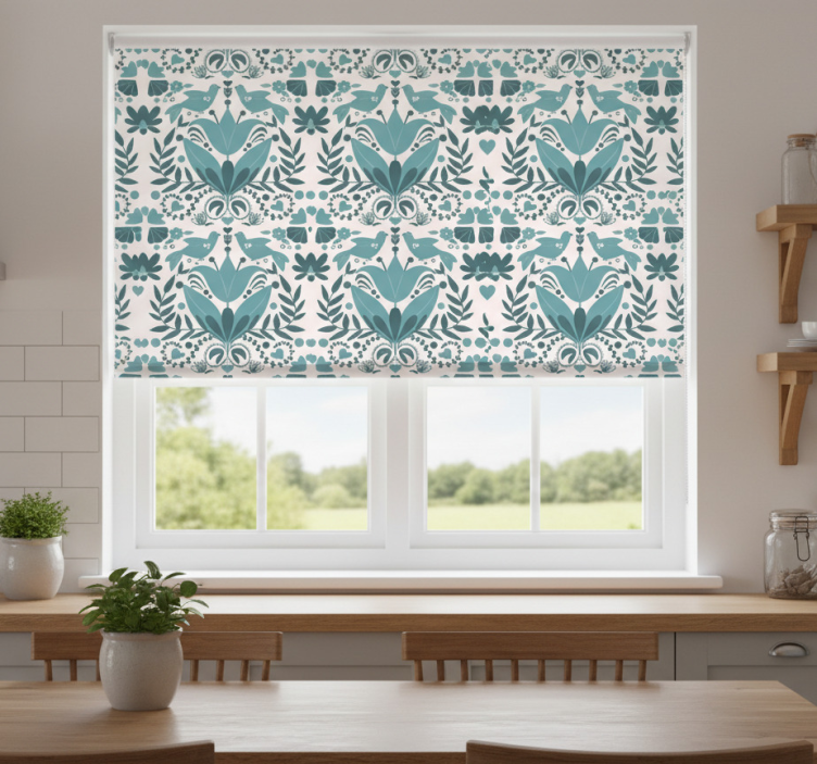 The Kitchen roller blind with blue folk art birds pattern kitchen roller blind is the ideal choice for those looking to enhance their interior decor with a touch of whimsy. Its vibrant design breathes life into your space, inspiring joy and creativity. Imagine sipping your morning coffee while surrounded by the lively birds and soothing colors—this roller blind transforms any kitchen into a cheerful retreat!