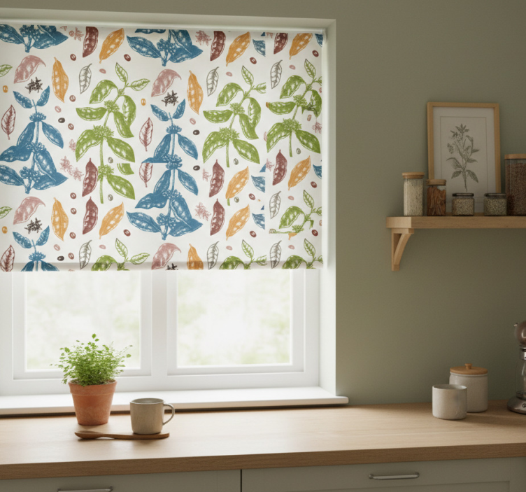 The Kitchen roller blind with colorful coffee plant pattern kitchen roller blind transforms ordinary spaces into extraordinary ones! Its lively design adds personality and charm, making it perfect for coffee lovers and anyone looking to brighten their kitchen. This roller blind serves as a stunning focal point while providing functional benefits like light control and privacy. Elevate your kitchen decor and create a cozy ambiance that invites conversation and culinary creativity!