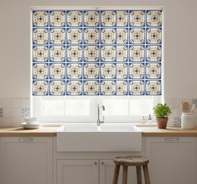 Reference: E6393Introducing our stunning Kitchen roller blind with pink flowers portuguese tile, where elegance meets functionality! Featuring a beautiful design that showcases vibrant pink flowers set against a backdrop inspired by traditional Portuguese tiles, this roller blind adds a splash of color and charm to any kitchen. Its intricate floral patterns and tile motifs create a warm and inviting atmosphere, making it a perfect addition to your home decor.