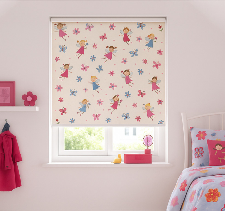 Reference: E5879Transform any teenage bedroom into a whimsical haven with our Happy little fairies teenage bedroom roller blind. This enchanting design features delightful fairies frolicking among vibrant flowers and twinkling stars, creating a magical atmosphere. The blind not only enhances the visual appeal but also protects the room from direct sunlight, providing a cozy retreat. With easy assembly and disassembly in just two clicks, cleaning becomes a breeze!