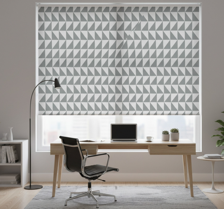 Office roller blind in grey geometric pattern