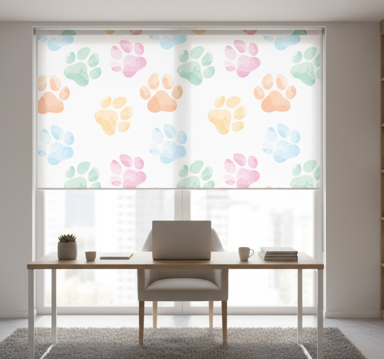 Office roller blind in pastel pet paw colors