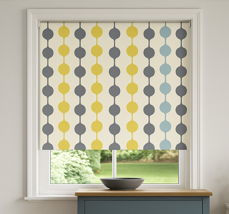 Scandinavian roller blind with colorful hanging circles