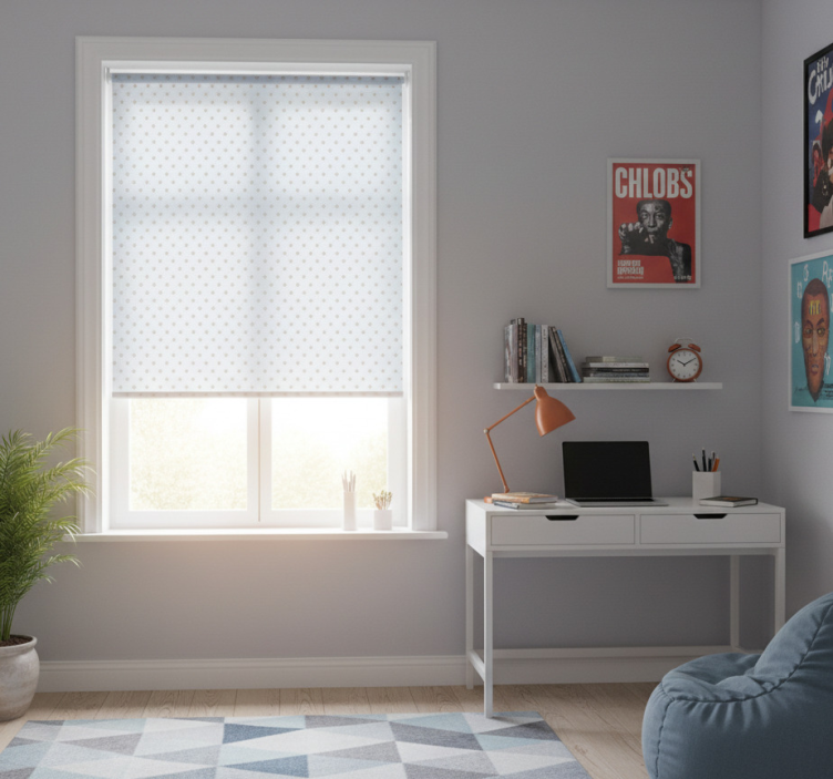 The Teenage bedroom roller blind blue background with gray stars adds a touch of magic to your decor! This teenage bedroom roller blind not only enhances the visual appeal of the room but also inspires creativity and comfort. Every glance at the beautiful starry design reminds you of the possibilities that lie ahead, making it the perfect choice for a vibrant teenage environment. Let your personality shine through with this stunning addition, as it turns an ordinary room into a captivating sanctuary.