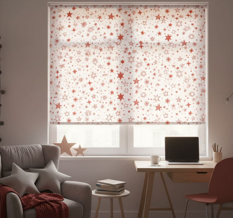 The Teenage bedroom roller blind red watercolor star teenage bedroom roller blind is an exceptional choice for decoration due to its unique design that inspires imagination and creativity. With its captivating starry pattern, it transforms a mundane room into a dreamy sanctuary. This roller blind not only serves as a functional window treatment but also adds a touch of individuality and flair, making the space truly reflect your teenager's personality. Let their room shine with this delightful decor element!