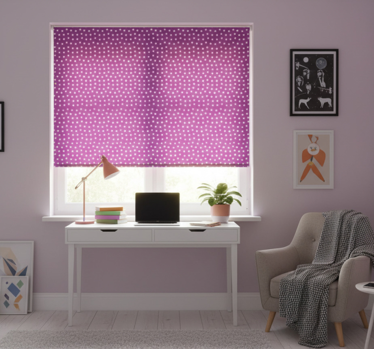The Teenage bedroom roller blind with white stars design is an ideal choice for decoration, as it effortlessly combines functionality with charm. Imagine your teenager's room transformed into a celestial haven, where the stars inspire creativity and dreams! This teenage bedroom roller blind enhances the overall aesthetic, making it a fantastic addition to any decor style while providing a cozy atmosphere.