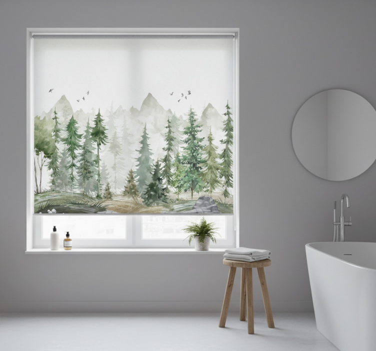 Tree roller blind in nordic pine minimal style