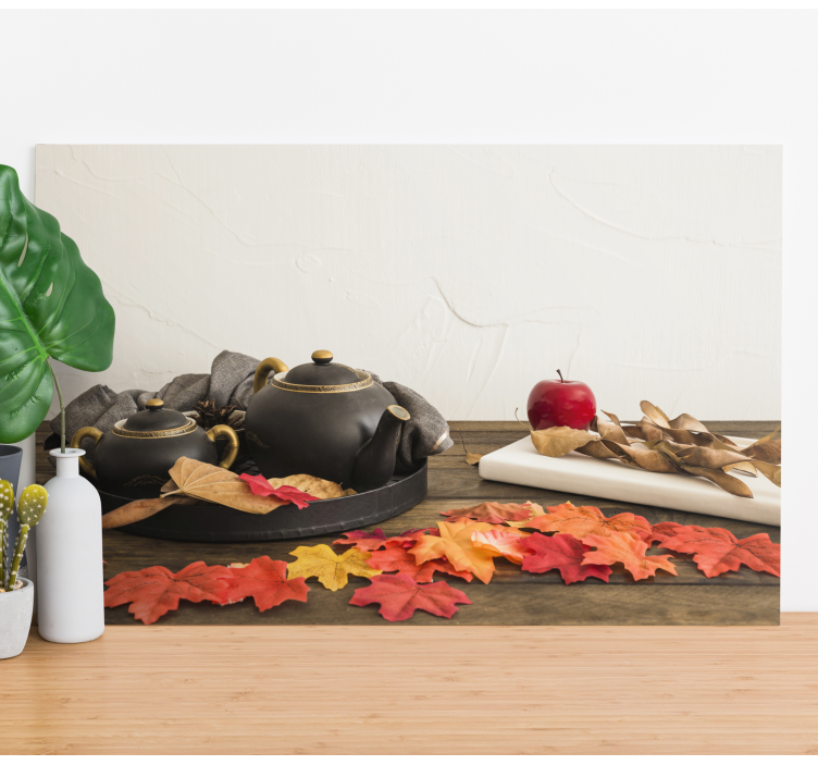 Experience the beauty of autumn with our Autumn Tea Arrangement landscape canvas. This stunning design features an inviting still life that includes charming teapots, a rustic table adorned with vibrant autumn leaves, and a fresh apple, all set against a warm backdrop that evokes the cozy spirit of the season. Perfect for adding a touch of fall elegance to any space, this canvas captures the essence of nature's changing palette!