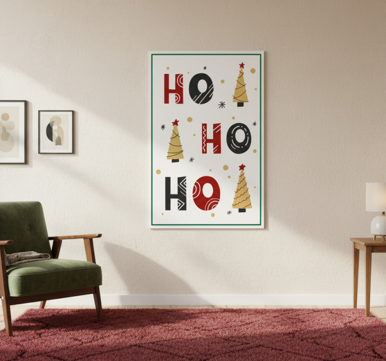 The Christmas poster ho ho ho christmas text design christmas poster is the perfect way to infuse your home with holiday cheer! Imagine the smiles it brings as family and friends gather around the warmth of your decorated space. This poster is not just a piece of art; it's an invitation to celebrate the joy of Christmas, making every corner of your home feel merry and bright!