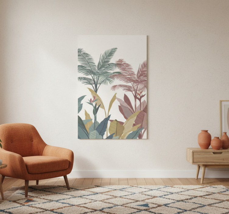 Reference: G986Introducing our stunning Flowers poster with terracotta tropical plants, a vibrant and captivating design that brings the beauty of nature into your home! This exquisite poster showcases rich, high color intensity illustrations featuring lush tropical plants set against a warm terracotta backdrop. The semi-matt finish offers a glare-free viewing experience, making it a perfect addition to any space that needs a touch of greenery.