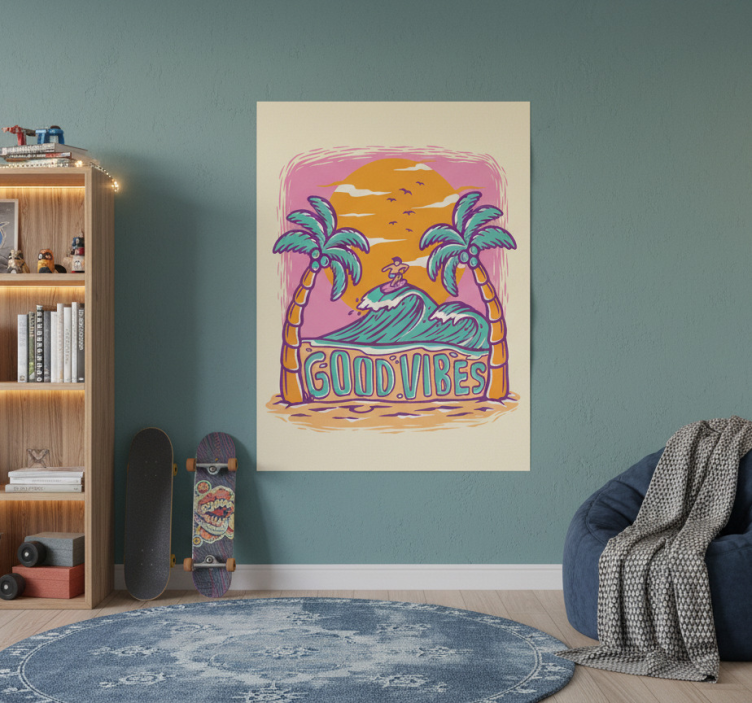 The Good vibes surf poster for teenager is not just a piece of art; it's an invitation to embrace positivity and adventure. Perfect for brightening up any room, this poster encourages creativity and a love for the surf lifestyle. Imagine transforming a plain wall into a vibrant focal point that inspires dreams of ocean waves and sunny days. It's the perfect decoration for any teenager eager to express their personality!