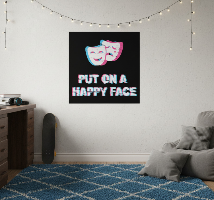 To showcase the Happy face expression poster for teenager, we recommend using double-sided adhesive tape on the back of the poster for a clean and easy application. Alternatively, you can frame it for a more polished look! For a quick fix, thumbtacks or reusable blu-tack work wonderfully as well.