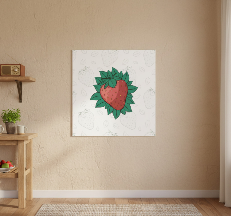 Reference: G609Introducing our stunning Kitchen poster bright juicy strawberries green leaves, a vibrant masterpiece that brings the freshness of nature right into your home! This delightful design features luscious strawberries surrounded by lush green leaves, creating a perfect harmony of color and vibrancy. The poster is crafted on high-quality 180g/m2 material, ensuring durability and a semi-matt finish that eliminates reflections, allowing the intense colors to shine through beautifully.