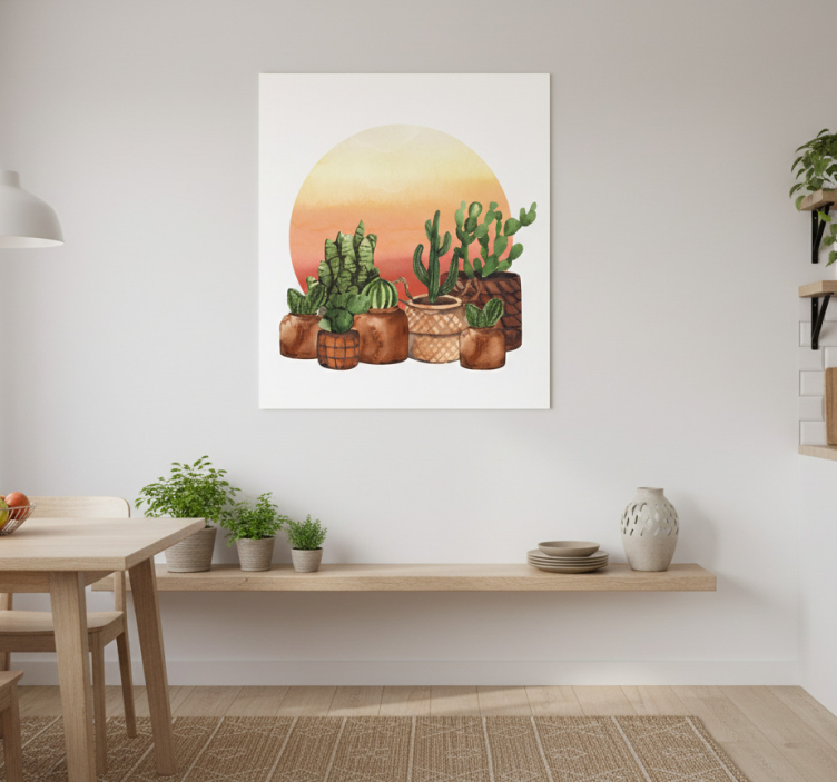 Transform your space with the enchanting Kitchen poster cactus with sunset in circle kitchen poster. This unique piece serves as a daily reminder of nature’s beauty and can inspire creativity while cooking. Its striking design not only enhances your kitchen's aesthetic but also evokes a sense of tranquility, making it a delightful addition to your home decor.