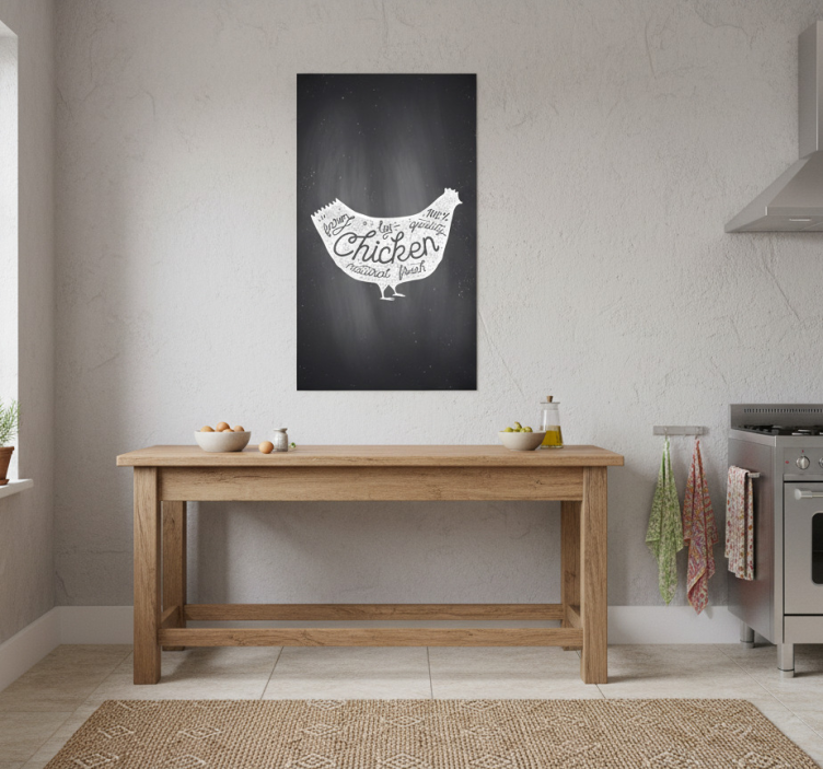 Reference: G649Introducing our stunning Kitchen poster farm fresh chicken art print, a delightful fusion of rustic charm and modern design! This art print features vibrant colors and a semi-matt finish that beautifully captures the essence of farm-fresh chickens. Made from high-quality 180g/m2 paper, it ensures durability with a high color intensity that will brighten up any kitchen space!