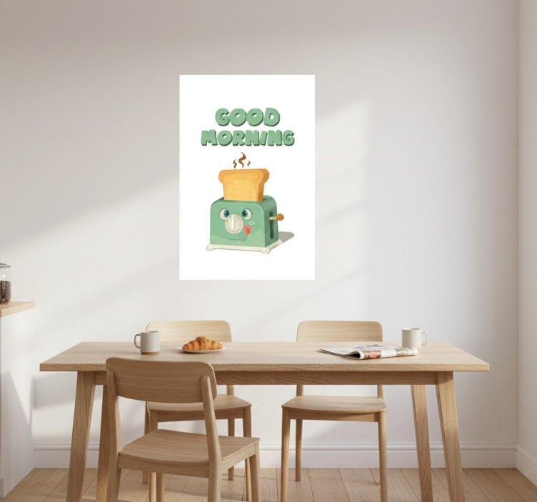 Reference: G652Start your day with a delightful touch of charm with our Kitchen poster good morning with toaster. This vibrant design features an eye-catching toaster that radiates warmth and positivity, making it the perfect addition to any kitchen. The semi-matt finish ensures that the colors pop without reflections, while the high colour intensity draws the eye and sparks joy in your morning routine. Printed on high-quality 180g/m2 paper, this poster is not just a decoration, but a daily reminder to embrace the joy of cooking and the comfort of home!