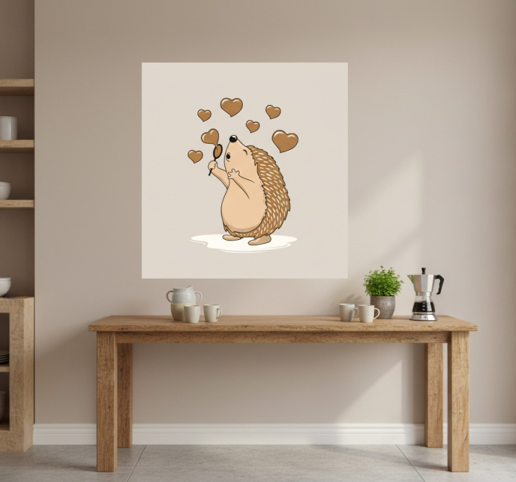 The Kitchen poster hedgehog with love hearts kitchen poster is not just a decorative item; it's a statement of love and joy! This enchanting artwork effortlessly brightens up your kitchen, inspiring cheerful moments and conversations. Imagine the smiles it will bring to your family and friends as they gather around, sharing meals and memories. Let this cute hedgehog remind you of the love that fills your home, creating a cozy atmosphere that everyone will cherish!