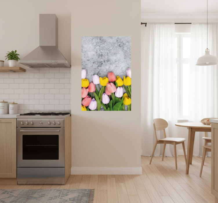 Reference: G635Introducing our stunning Kitchen poster of similar tulip flowers, a visual delight that brings elegance and charm to your cooking space! This beautifully designed poster features a vibrant array of tulip flowers, showcasing their natural beauty with high colour intensity. The semi-matt finish ensures no reflections, making it perfect for any kitchen environment. Printed on 180g/m2 grammage paper, this poster combines durability with style, making it an ideal choice for your interior decor.