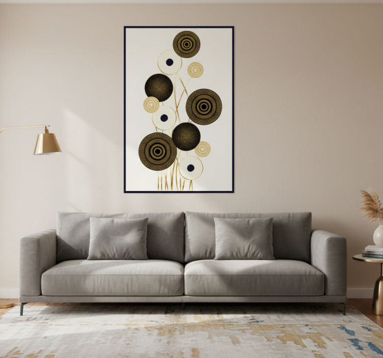 Reference: G858Transform your space with our stunning Living room poster circles glamour decor, designed to captivate and inspire! This exquisite poster features vibrant circles that draw the eye, enhancing your living room's aesthetic. Made with a premium 180g/m2 grammage for durability, it boasts a semi-matt finish that eliminates reflections while maintaining high color intensity. Elevate your home decor effortlessly!