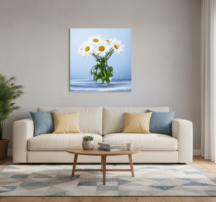 The Living room poster daisy flowers in glass pots living room poster is an inspiring addition to your home decor! Imagine the joy and warmth it brings to your living space as it captures the essence of nature's beauty. This poster not only uplifts your mood but also creates a welcoming atmosphere for family and friends. With its stunning design, it seamlessly complements various interior styles, making it a must-have for any home.