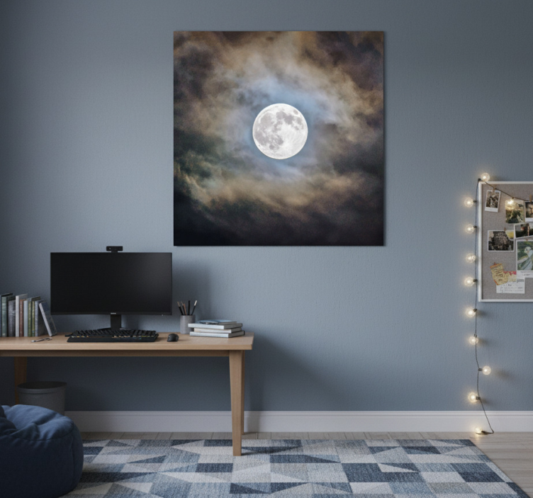 Reference: G785Transform your space with our stunning Living room poster full moon night, a captivating design that beautifully captures the enchanting allure of a full moon illuminating a serene night sky. This poster features a semi-matt finish without reflections for a perfect view, vibrant colors that showcase high color intensity, and a robust 180g/m2 grammage that ensures durability. It is the ideal choice for those looking to enhance their living room decor!