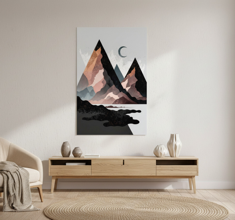 Reference: G855Transform your space with our Living room poster nordic geometric mountains art, a stunning piece that beautifully blends simplicity and elegance. This captivating design features vibrant geometric patterns and majestic mountain silhouettes, creating a serene atmosphere that elevates any living area. Made with a 180g/m2 grammage and a semi-matt finish, this poster showcases high colour intensity without reflections, making it a perfect choice for art enthusiasts!