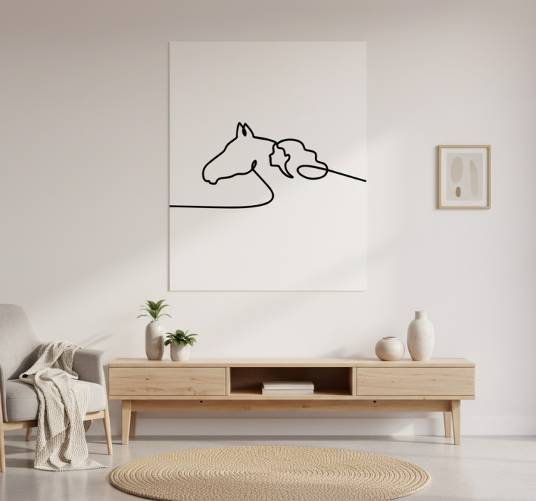 Reference: G895Introducing our stunning Living room poster of woman with horses line art, a captivating masterpiece that beautifully combines elegance and artistry. This unique design features a graceful woman entwined with majestic horses, rendered in a minimalist line art style. The poster is crafted on high-quality 180g/m2 paper, offering a semi-matt finish without reflections that enhances its aesthetic appeal while ensuring high colour intensity. It's the perfect addition to elevate your living space!
