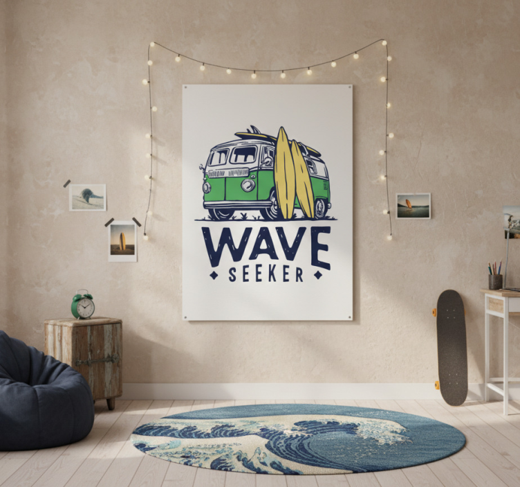 Reference: G725Introducing our vibrant Poster for teenager surfing van, a stunning piece that encapsulates the spirit of adventure and freedom! This design features a colorful depiction of a classic surfing van, complete with waves and surfboards, making it the perfect addition to any teen's room. Crafted with 180g/m2 grammage, it ensures durability while providing a semi-matt finish that minimizes reflections. The high colour intensity makes the design pop, drawing attention and sparking joy!