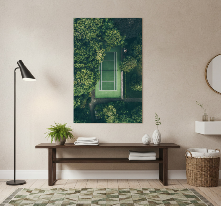 Reference: G1102Introducing our stunning Sports poster green tennis court, designed to bring a vibrant touch to your space! This eye-catching design features a lush green tennis court backdrop, highlighted with rich color intensity that captivates the essence of the sport. The semi-matt finish ensures that reflections won't distract from the stunning visuals, while the 180g/m2 grammage guarantees a premium feel that's perfect for posters.