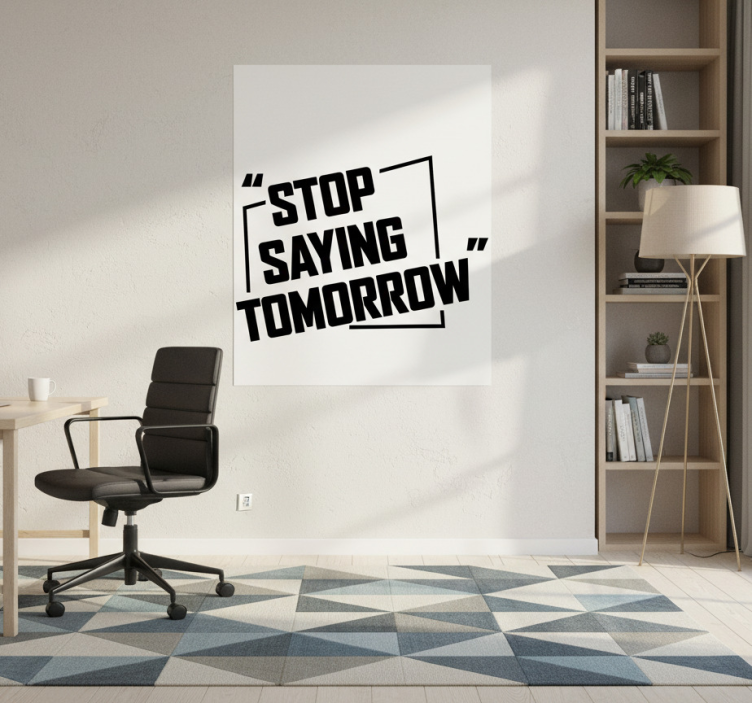 To display your Stop saying tomorrow office poster, we recommend using double-sided adhesive tape for a seamless look. Simply apply the tape to the back, hold it in place for 10 seconds, and enjoy the instant transformation of your office space! Alternatively, frame it for a polished finish or use thumbtacks and reusable blu-tack for easy mounting.