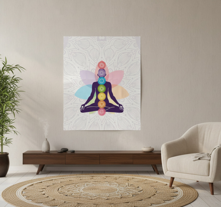 Reference: G1075Introducing our stunning Zen poster of a meditating figure with chakras, designed to elevate your space with its harmonious blend of colors and serene imagery. This poster features a meditating figure, beautifully illustrating the alignment of chakras, set against a backdrop that radiates tranquility. Crafted on high-quality 180g/m2 paper, its semi-matt finish ensures high color intensity without reflections, making it a perfect addition to any room.