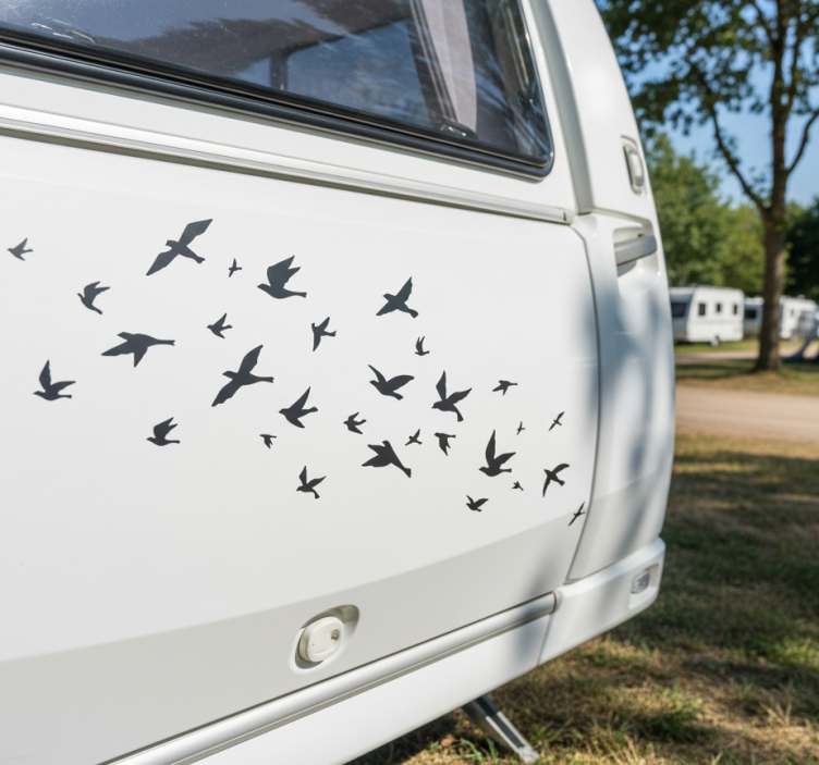 Reference: A54718Introducing our stunning Camper decal soaring birds flock design, a captivating blend of graceful birds in flight that brings a sense of freedom and adventure to your space. This beautifully crafted decal features vibrant colors and intricate details, making it a perfect addition to your camper or home. The design seamlessly combines elegance with a dynamic visual appeal, ensuring that your surroundings are infused with a touch of nature and wanderlust!