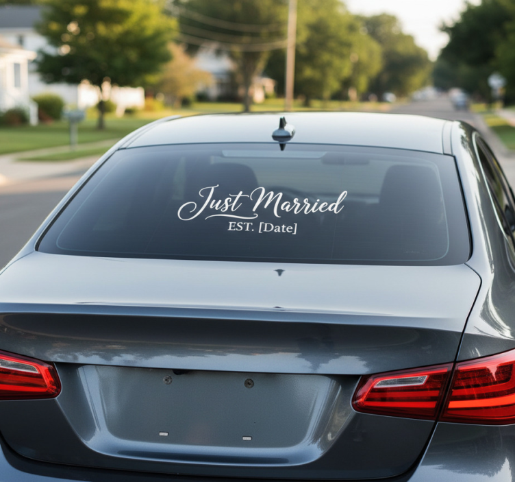 Our Car decal just married decal is manufactured with a satin finish, providing excellent color intensity without reflections. The vinyl is durable, easy to clean, and can be customized to your specifications. With a longevity of 8-10 years and a grammage of 80 microns, this car decal is not only stylish but also practical. Make your wedding journey memorable with this stunning decal!