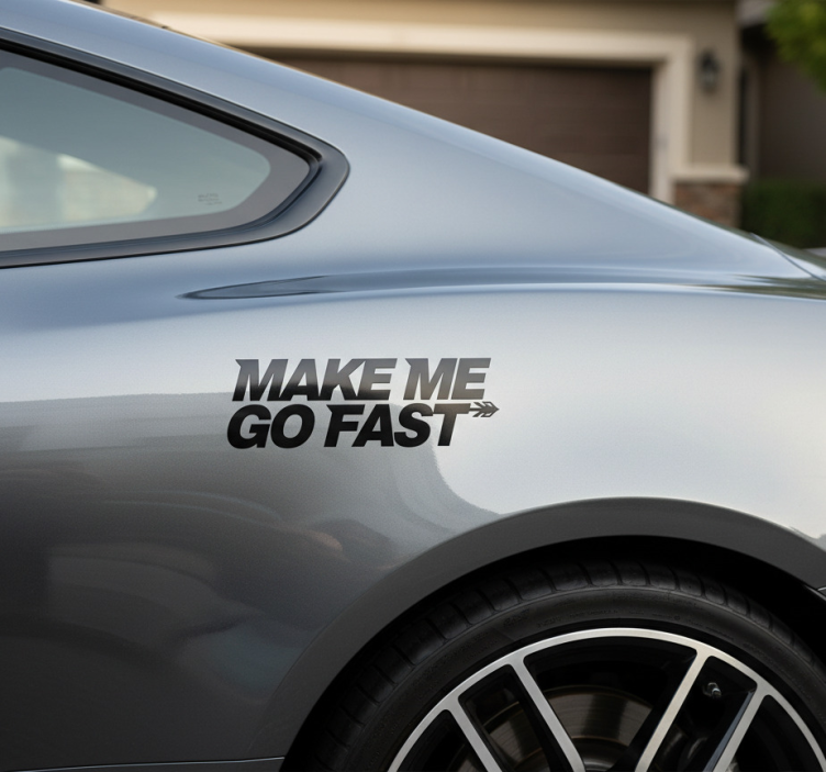 Reference: A54677Introducing our striking Car decal make me go fast, designed to ignite the passion for speed! This eye-catching decal features vibrant colors and a dynamic design that resonates with automotive enthusiasts. The combination of sleek graphics and bold typography creates an exhilarating visual experience, making it a perfect addition to any car enthusiast's collection!