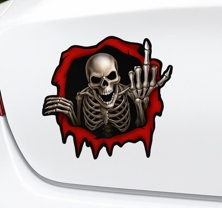 Reference: A54850Introducing our Car decal scary skeleton breaking free, a striking piece of art that features a dramatic skeleton design bursting through the surface! This eye-catching decal showcases intricate details and bold lines, making it a perfect addition to your decor. The vibrant colors and high-quality materials ensure that this decal stands out in any setting, captivating all who lay their eyes on it!