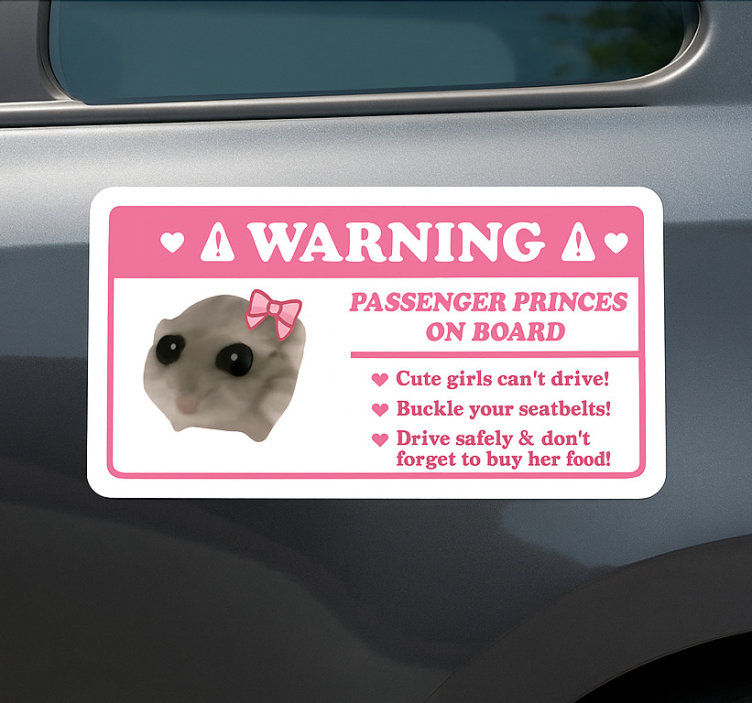 Transform your car into a canvas of creativity with our Car sticker passenger princess humor car sticker! This product is designed to inspire joy and laughter every time you or your passengers hop in. It’s an easy yet effective way to express your unique style and bring a smile to everyone who sees it. Elevate your vehicle’s decor and let your personality shine through with this playful addition!